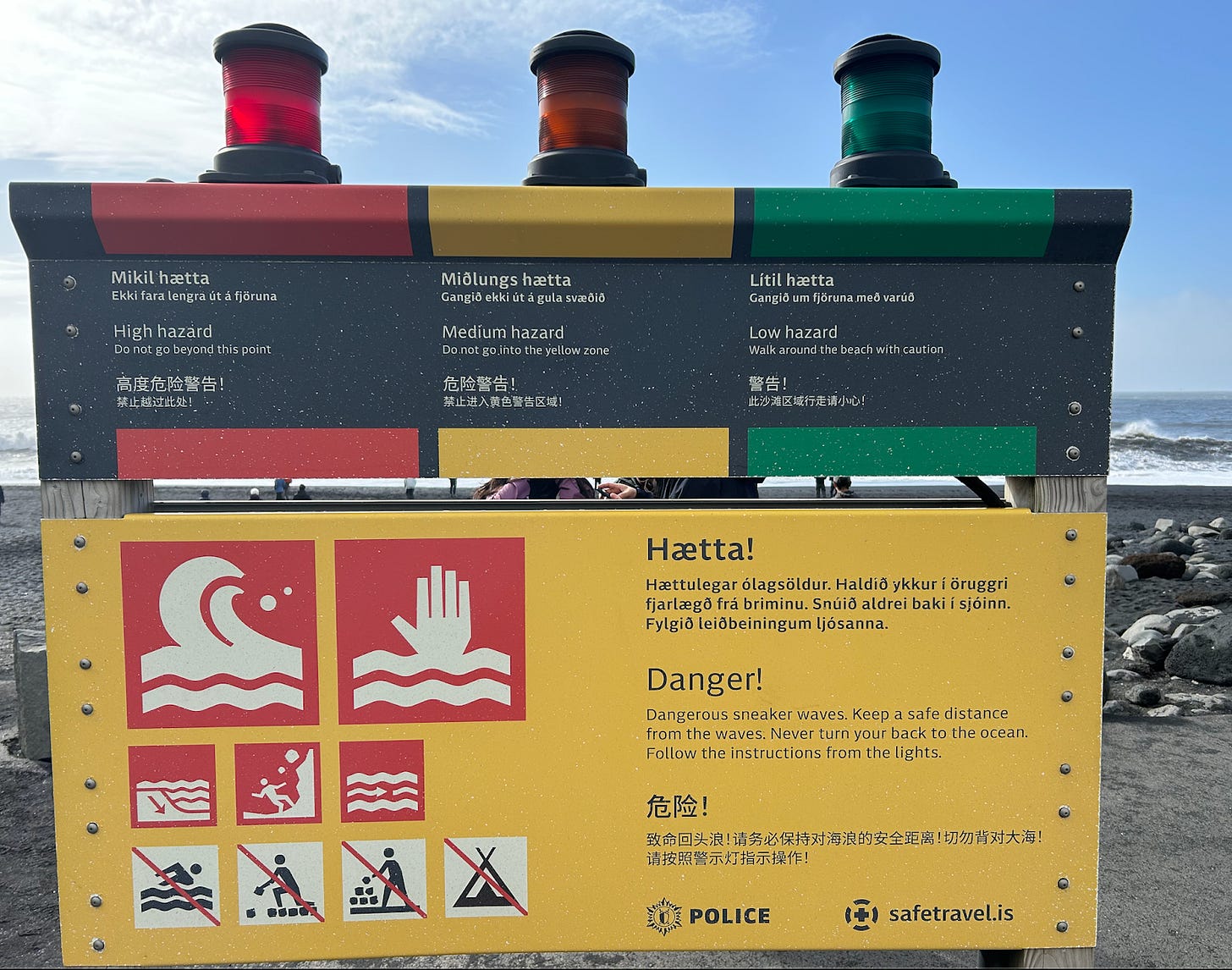 On a recent vacation to Iceland, we visited a popular beach on the south coast of Iceland that’s so dangerous they’ve installed a traffic-light system to measure risk. Green doesn’t mean “safe.” Yellow doesn’t mean “fine.” Red doesn’t even mean “you’re doomed.” Each color simply signals a condition, a level of awareness, and the need for a particular action.